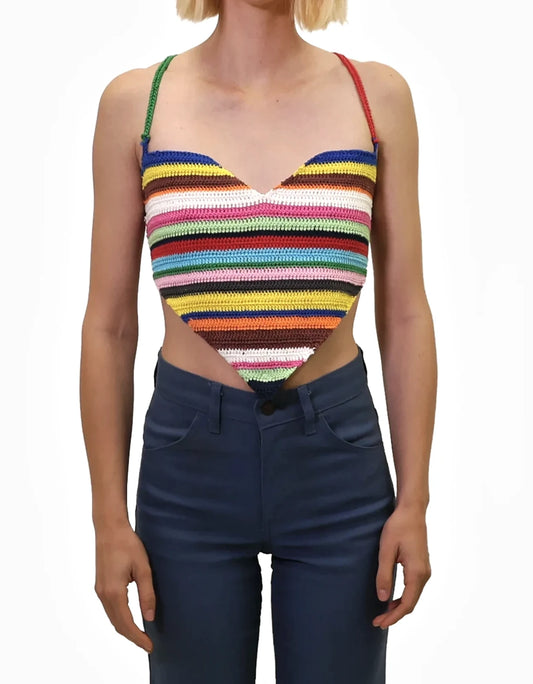 • Bleta | asymmetric crochet stripe top