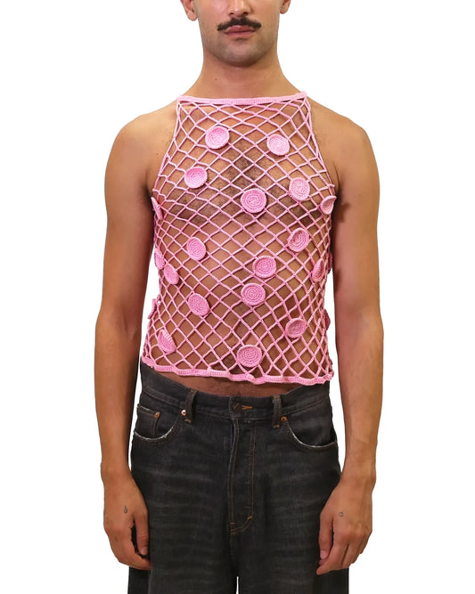 net crochet top with dots