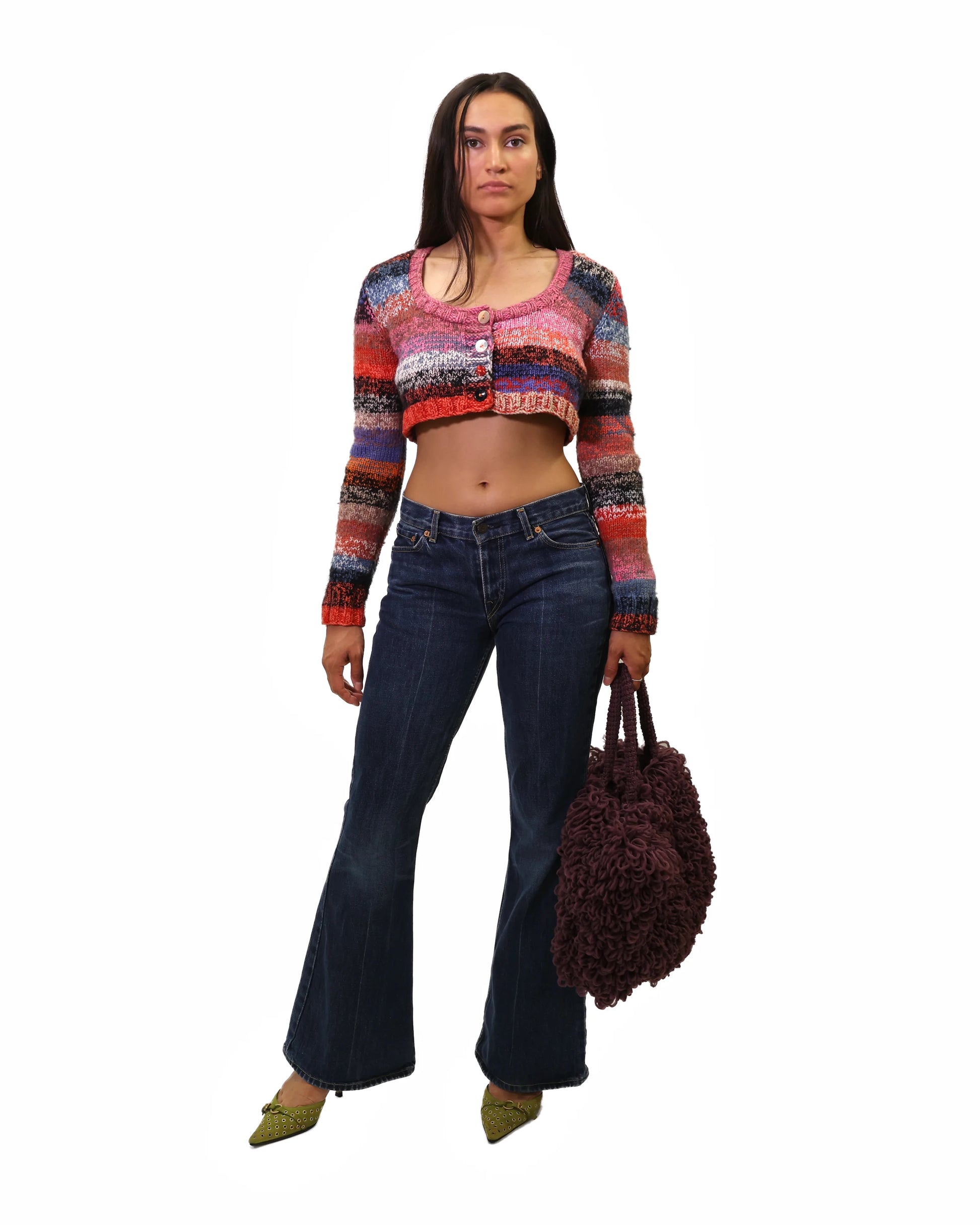 Yllka | cropped stripe plain knit cardigan with various buttons